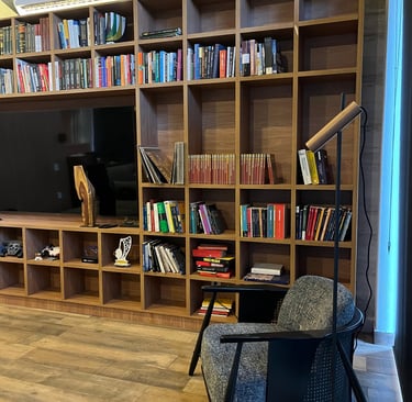 Mais que um closet, seu santuário pessoal. Desenhamos dressing rooms que funcionam como uma boutique particular, onde cada peça da sua coleção é valorizada com organização inteligente, iluminação cênica e acabamentos impecáveis.
